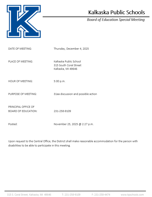 Board of Education Special Meeting - 31aa Discussion and Possible Action